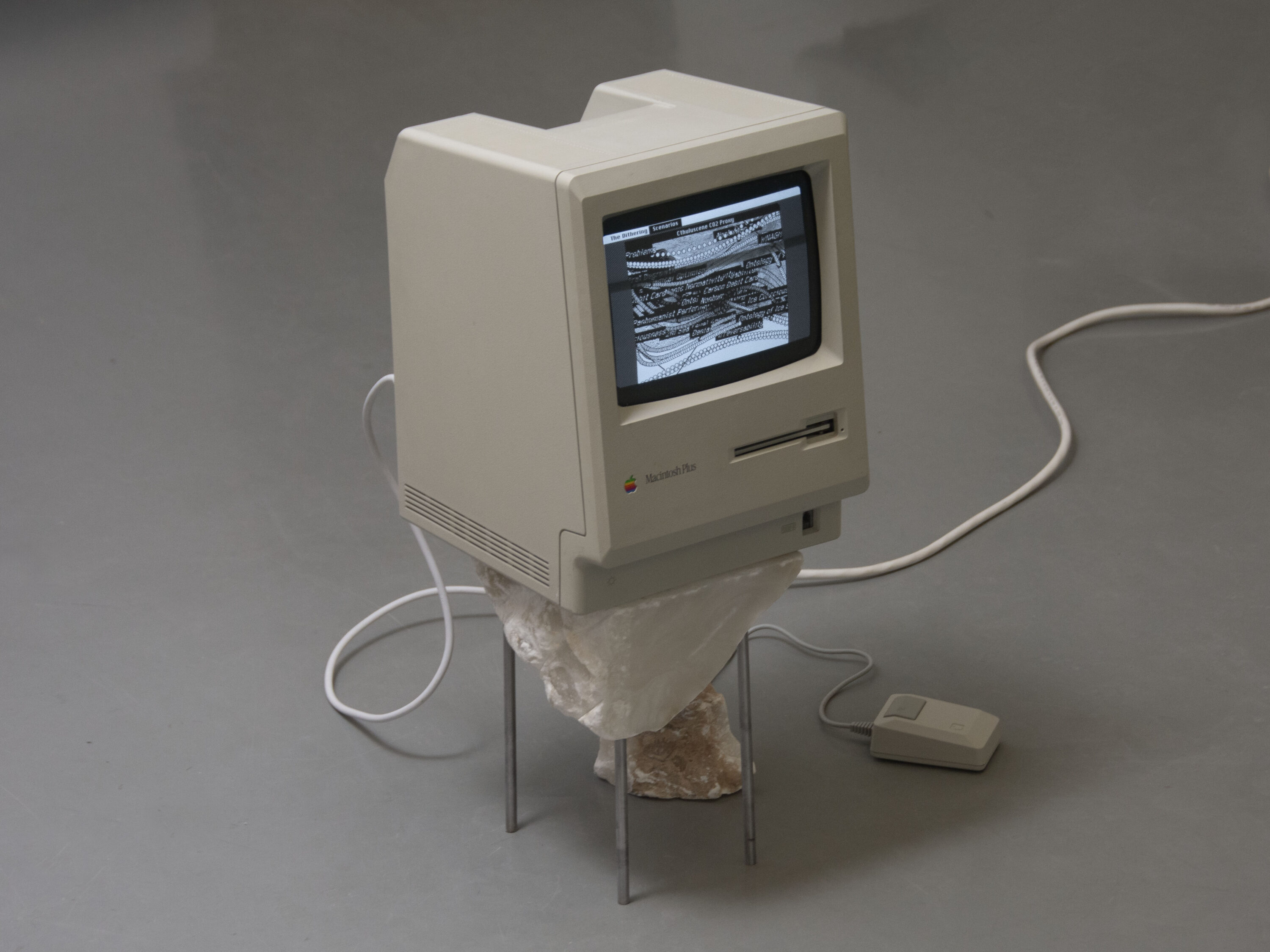 The series “The Dithering” uses 1980s Apple computers to contextualize climate apathy within the history of the techno-optimist imaginaries that prevail to the present. The assemblage sculptures incorporate a functional computer running subversive screensavers coded in C and Applescript. Using a visual language native to early computing and 90s Net art, the text and images dwell on the failures to adequately respond to climate science, which first became widely publicized in the same time period by the creation of the IPCC in the late 80s, and the release of the first Climate Assessment report in 1990.